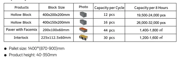 یہ سامان مختلف قسم کی کھوکھلی اینٹوں کی مصنوعات تیار کرتا ہے، جس میں متعدد فنکشنل اقسام جیسے عام بلاکس، آرائشی بلاکس، اور انسولیٹنگ بلاکس شامل ہوتے ہیں۔ سوراخ کی شکلوں میں مربع اور گول سوراخ شامل ہیں، اور ترتیب واحد قطار، ڈبل قطار، اور کثیر قطار سوراخ کے ڈھانچے کو حاصل کر سکتا ہے. مولڈ کو تبدیل کرنے یا آلات کے پیرامیٹرز کو ایڈجسٹ کرنے سے، مختلف قسم کی اینٹوں کی مصنوعات کو مارکیٹ کے متنوع مطالبات کو پورا کرنے کے لیے لچکدار طریقے سے تبدیل کیا جا سکتا ہے۔